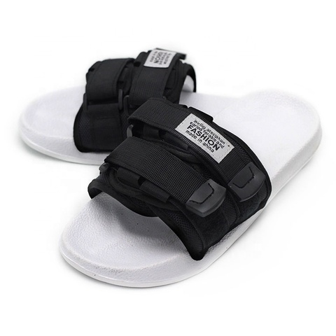 ファッション工場卸売スリッパブランク通気性メッシュOEMサマースライドシューズプレーンカスタムロゴブラックサンダルメンズEVAキャンバス、eva