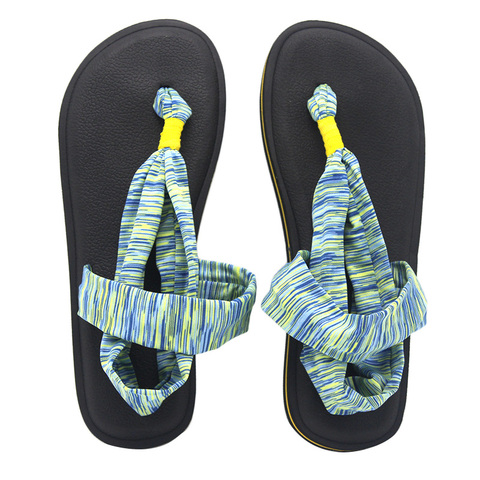 女性のカスタマイズ可能なビーチサンダルヨガサンダル軽量EVAコットン生地Tバックスリッパ滑り止めカジュアルフラットスリング屋内使用